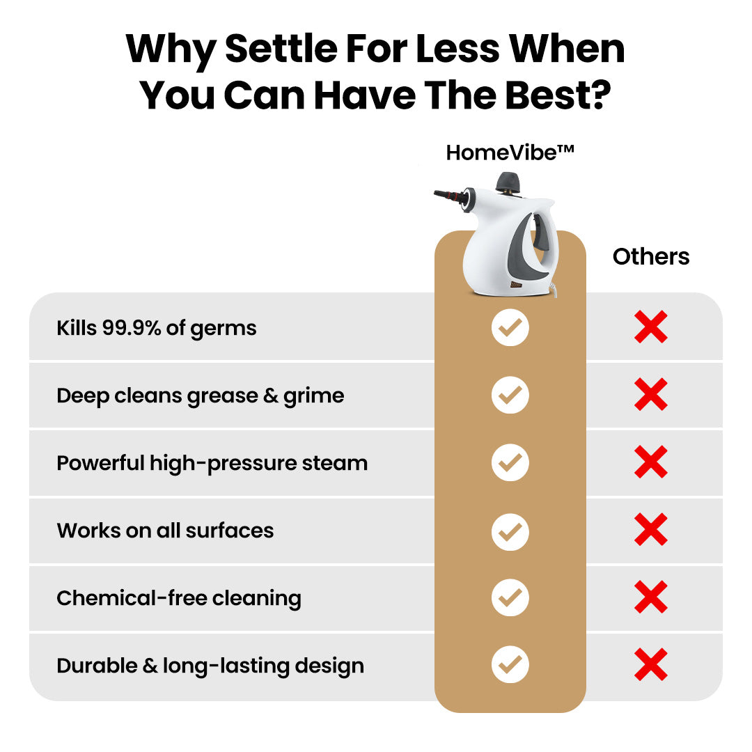 Unlike budget steamers that often leak, clog, or lose steam power, the SteamPro is built with premium components and comes with multiple attachments for whole-home cleaning. It’s designed to last—and save you from buying replacement cleaners.